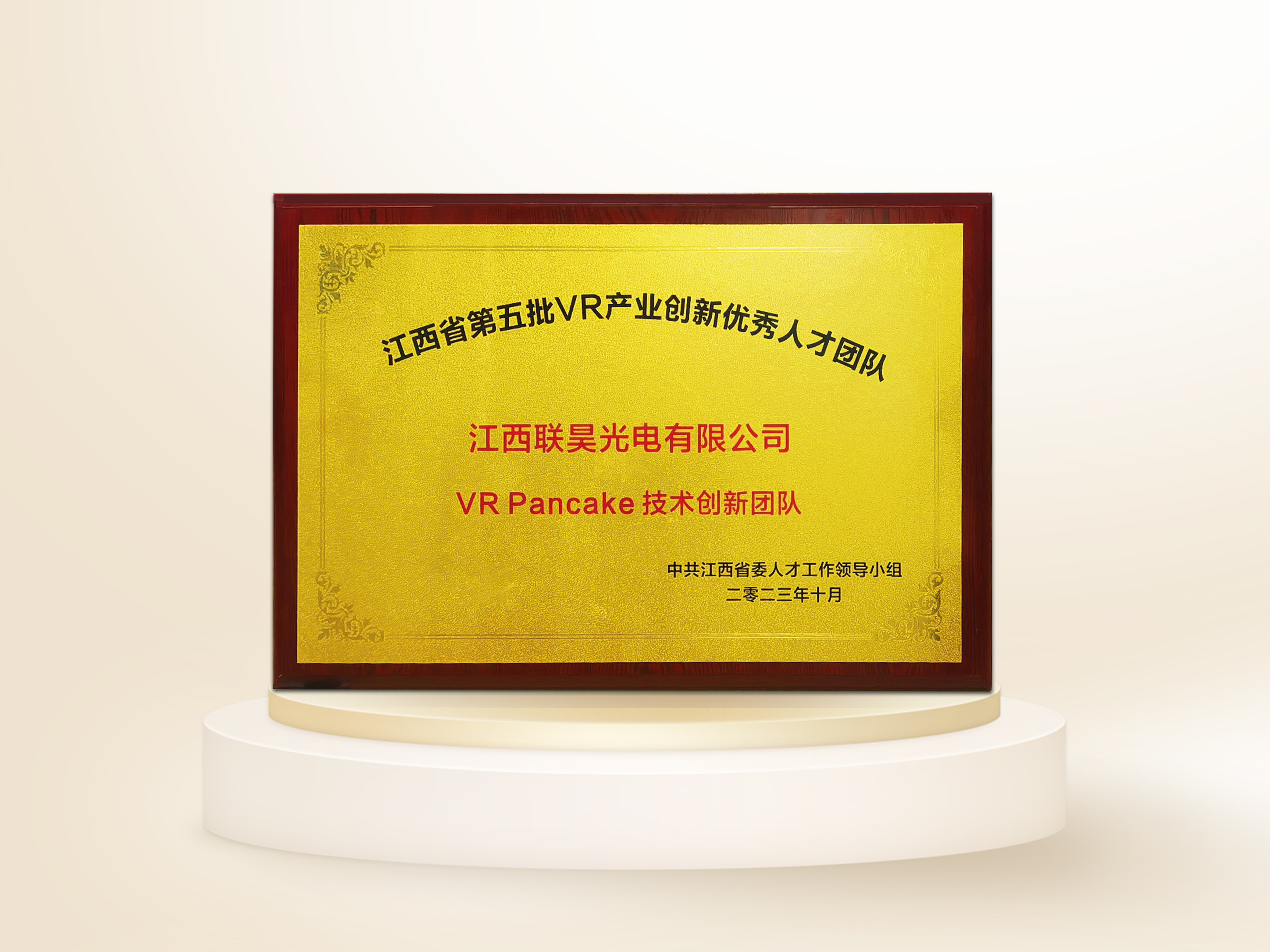 【概要描述】近日,中共江西省委人才工作领导小组公布了江西省第五批VR产业创新创业优秀人才团队名单,并于10月20日在2023世界VR产业大会上举行授牌仪式,此次共有十个团队入选,包括6个创业团队和4个创新团队。江西联昊光电有限公司“VR Pancake技术创新团队”经过激烈角逐脱颖而出,成功入选创新优秀人才团队,并获得100万元项目资助。